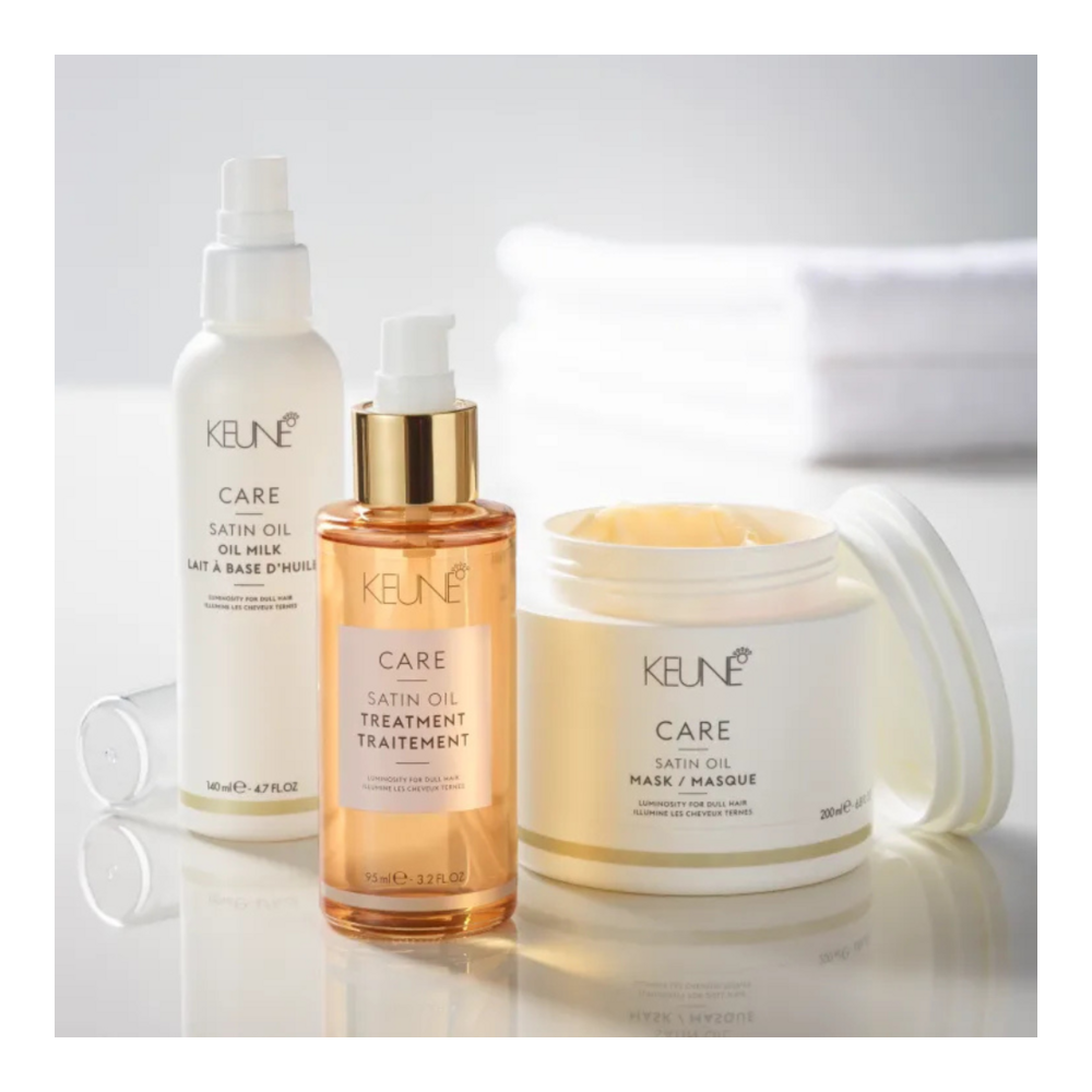 Satin Oil Treatment moisturizes, nourishes, and enhances shine with maracuja and baobab oils, leaving hair soft, lightweight, and beautifully radiant.