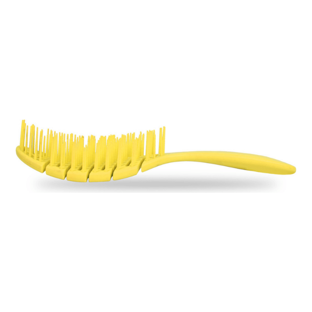 The Detangling brush, available in three different colors (green, pink, and yellow), is perfect for untangling hair without pulling, thanks to its flexible anti-pulling fibers.