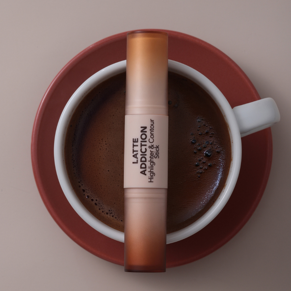 - Creamy glow highlighter stick with warm, coffee-inspired tones