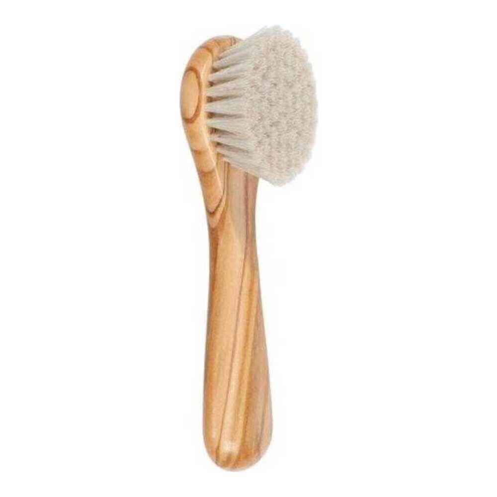 The round powder brush is made entirely from natural materials.