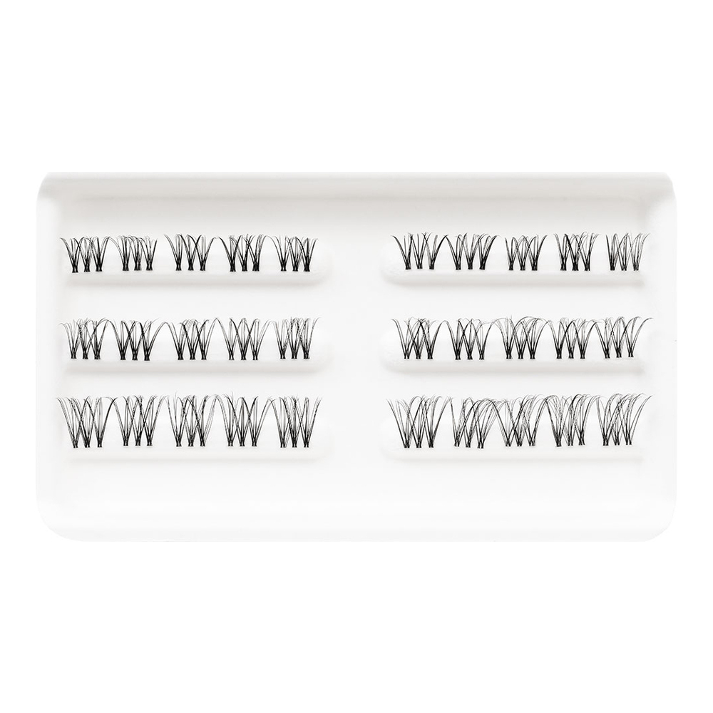 Enhancing cluster striplash with an extra fine band for a natural look. Made with synthetic fibers, layered for a beautiful 3D effect creating a fuller lash line.